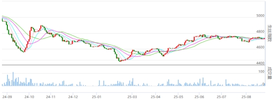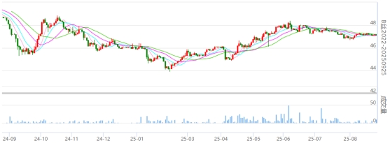 今日(周二)盤面各生絲遠近合約有所收跌,成交較昨日放大。250925合約持倉量下降,而260325合約則出現(xiàn)增倉,且價格跌幅相對更大,反映出市場對中遠月合約的交易布局逐步加大。