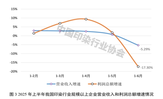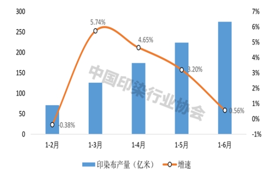 圖1 2025上半年我國(guó)印染行業(yè)規(guī)模以上企業(yè)印染布產(chǎn)量及增速