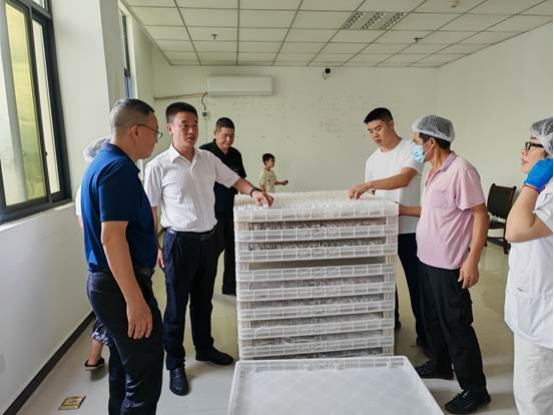 科研人員在中試車間內(nèi)觀察人工飼料養(yǎng)蠶情況