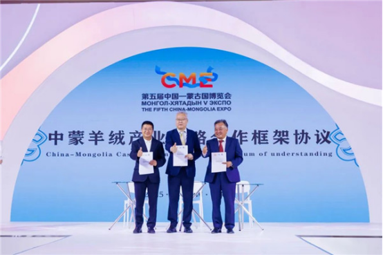會上,中國毛紡織行業(yè)協(xié)會會長劉家強、蒙古國毛紡協(xié)會主席比仁巴特勒·鋼巴特、鄂爾多斯市羊絨協(xié)會會長李豐共同簽署并發(fā)布《中蒙羊絨產(chǎn)業(yè)戰(zhàn)略合作框架協(xié)議》。