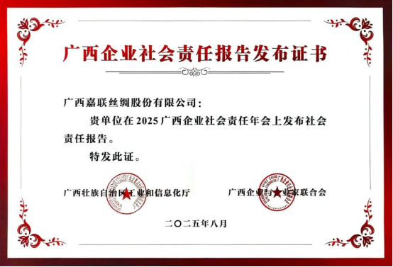 8月27日下午,在南寧舉行的2025廣西企業(yè)社會責(zé)任年會上,廣西嘉聯(lián)絲綢股份有限公司正式發(fā)布了2024年ESG社會責(zé)任報(bào)告。此次年會由自治區(qū)工業(yè)和信息化廳、廣西企業(yè)與企業(yè)家聯(lián)合會聯(lián)合主辦,旨在推動(dòng)企業(yè)積極履行社會責(zé)任,促進(jìn)可持續(xù)發(fā)展。