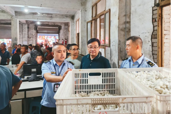 嚴(yán)抓行業(yè)檢查,強(qiáng)化質(zhì)量監(jiān)管效能。為進(jìn)一步規(guī)范鮮繭收購市場秩序,高縣市場監(jiān)管局圍繞設(shè)備合規(guī)性、儀評規(guī)范性、市場秩序穩(wěn)定性三大重點,構(gòu)建“協(xié)同監(jiān)測+聯(lián)合執(zhí)法”監(jiān)管格局。在質(zhì)量監(jiān)測方面,協(xié)同省纖檢局開展鮮繭產(chǎn)品質(zhì)量監(jiān)測工作,累計覆蓋全縣13個蠶繭收購站(點),抽檢產(chǎn)品18批次,全面掌握鮮繭質(zhì)量狀況;在執(zhí)法檢查方面,牽頭成立常態(tài)、日常、機(jī)動3個執(zhí)法小組,并聯(lián)合商務(wù)、公安等部門開展全覆蓋執(zhí)法檢查,對檢查中發(fā)現(xiàn)的未嚴(yán)格執(zhí)行儀評收購等違法行為嚴(yán)肅查處,目前已立案3件,形成強(qiáng)有力的監(jiān)管震懾。通過“監(jiān)測+執(zhí)法”的“監(jiān)”“管”結(jié)合模式,有效規(guī)范了鮮繭收購行為,推動全縣鮮繭收購質(zhì)量實現(xiàn)整體提升。