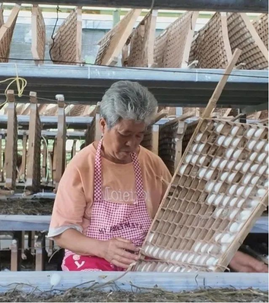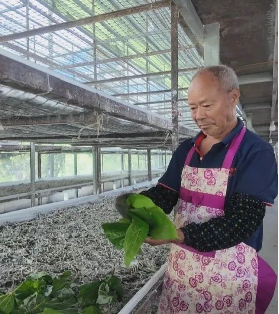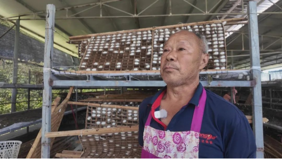 黔江區(qū)石家鎮(zhèn)馬腦頂村蠶?;毓芾砣藛T 陳云江:我們這一季一共養(yǎng)了56張蠶,產(chǎn)量比較高,每張有80斤左右,整體收入可能有十萬元。
