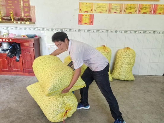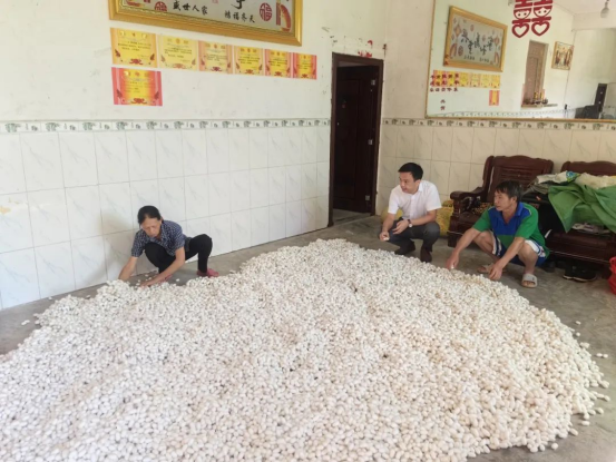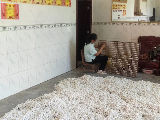 在泗孟鄉(xiāng)生滿(mǎn)村,養(yǎng)蠶戶(hù)黃江山家中的秋繭已全部采摘完畢。他和家人正忙著將雪白的蠶繭裝袋,準(zhǔn)備外銷(xiāo)?!敖衲晷星椴诲e(cuò),目前已養(yǎng)十批蠶,收入超五萬(wàn)元。下半年計(jì)劃再養(yǎng)四到五批,年收入預(yù)計(jì)能突破八萬(wàn)元。”黃江山笑著說(shuō)。