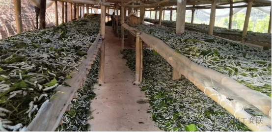 “補”字給力,政府扶持添動力。德宏州委州政府及隴川縣委縣政府高度重視蠶桑產(chǎn)業(yè)的發(fā)展,分別出臺蠶桑產(chǎn)業(yè)高質(zhì)量發(fā)展三年行動計劃,著力推動隴川縣蠶桑產(chǎn)業(yè)“一縣一業(yè)”全鏈條發(fā)展。自2019年起,州級財政每年安排1000萬元專項經(jīng)費,重點補貼嫁接桑苗、雜交桑、地膜覆蓋、蠶棚建設、養(yǎng)蠶保險。政企聯(lián)動推進流轉農(nóng)戶低效土地集約化經(jīng)營,2024年首次在隴川縣王子樹鄉(xiāng)流轉土地500畝,建成高標準桑園及23個6000平米蠶棚,完善基礎設施后返包給14戶農(nóng)戶管養(yǎng),四個月即顯效益,破解農(nóng)戶投入不足難題,當年新植桑園養(yǎng)蠶收益全歸農(nóng)戶,次年起按“二八”分成,該模式獲群眾認可,規(guī)避土地流轉風險,保障租金與收益,還可套種林桑、桑糧等增收,實現(xiàn)“承包一戶、高效一戶、穩(wěn)定增收一戶”。