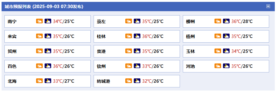 未來三天,全區(qū)大部地區(qū)最高氣溫34~36℃、局地37℃以上。