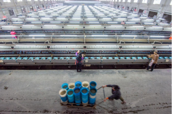 圖為東方絲路公司繅絲車間生產(chǎn)場(chǎng)景