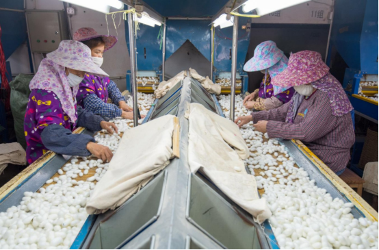 圖為東方絲路公司選繭車間生產(chǎn)場(chǎng)景