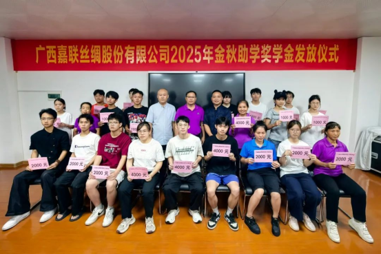 金秋送暖,逐夢(mèng)前行。8月26日,廣西嘉聯(lián)絲綢股份有限公司舉行2025年“金秋助學(xué)”獎(jiǎng)學(xué)金發(fā)放活動(dòng)。今年共有26名嘉聯(lián)員工子女獲得公司獎(jiǎng)學(xué)金資助。