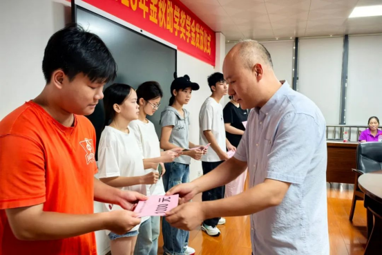 公司領(lǐng)導(dǎo)為受資助學(xué)生頒發(fā)獎(jiǎng)學(xué)金