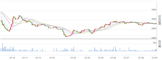 今日(2025年09月04日,周四)中國繭絲綢交易市場生絲電子指數(shù)下跌0.15%報收于4718.85點。B絲2022D(商檢4A級生絲):250925合約下跌0.06萬元46.95萬元;260325合約下跌0.09萬元報收于47.31萬元;260925合約報平收于47.73萬元。