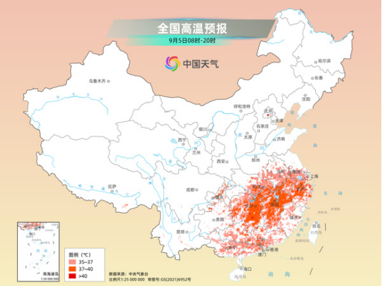 與北方秋涼形成鮮明對(duì)比的是,南方暑熱猶存,今天高溫范圍仍然較大,覆蓋重慶、湖北、湖南、江西、安徽南部、江蘇南部、浙江、廣東、廣西等多地。明天開始雖然副熱帶高壓減弱,南方高溫減少,但多地最高氣溫仍將維持在30℃以上,悶熱依舊。