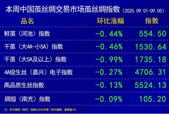 本周,高品質(zhì)生絲價(jià)格指數(shù)繼續(xù)有所小幅下滑。部分協(xié)作單位有所下調(diào)價(jià)格。