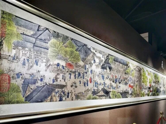 來(lái)到四川絲綢博物館,館內(nèi)珍藏的絲綢臻品讓人大飽眼福。其中,以傳統(tǒng)蜀錦織造工藝制作的《清明上河圖》尤為矚目,畫(huà)心長(zhǎng) 18.8 米、高 0.8 米,是史上最長(zhǎng)的蜀錦畫(huà)作,被譽(yù)為 “天下第一蜀錦”,其細(xì)膩的織造工藝展現(xiàn)出北宋時(shí)期的市井風(fēng)貌,具有極高的歷史與藝術(shù)價(jià)值。此外,繡滿(mǎn)古典名著《紅樓夢(mèng)》中金陵十二釵的屏風(fēng),人物栩栩如生,一針一線(xiàn)皆彰顯著高超的刺繡技藝。四川省絲綢協(xié)會(huì)副秘書(shū)長(zhǎng)譙武陪同調(diào)研。