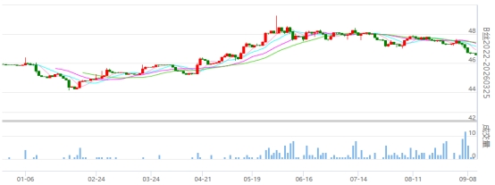 今日(2025年09月11日,周四)中國(guó)繭絲綢交易市場(chǎng)生絲電子指數(shù)下跌0.12%報(bào)收于4663.97點(diǎn)。B絲2022D(商檢4A級(jí)生絲):250925合約報(bào)平收于46.53萬(wàn)元;260325合約下跌0.09萬(wàn)元報(bào)收于46.59萬(wàn)元;260925合約下跌0.12萬(wàn)元報(bào)收于47.16萬(wàn)元。