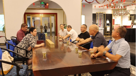 此外,古巴代表團(tuán)特別就2024年底上久楷為古巴技術(shù)人員提供絲織技藝培訓(xùn)的事宜進(jìn)行了回訪和進(jìn)一步洽談。吳建華董事長(zhǎng)表示,上久楷精心設(shè)計(jì)的培訓(xùn)課程,涵蓋了絲綢歷史文化,絲綢織造技藝、產(chǎn)品設(shè)計(jì)、車(chē)間管理等多個(gè)環(huán)節(jié),已確保古巴技術(shù)人員能夠全面掌握絲綢產(chǎn)業(yè)的核心技術(shù)和管理經(jīng)驗(yàn)。