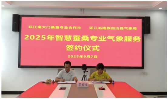 9月7日,廣西河池市環(huán)江毛南族自治縣氣象局與環(huán)江南大門桑蠶專業(yè)合作社正式簽署智慧蠶桑專業(yè)氣象服務(wù)合作協(xié)議,縣氣象局局長(zhǎng)莫麗娜、南大門桑蠶專業(yè)合作社理事長(zhǎng)韋朝東出席簽約儀式并簽署合作協(xié)議。