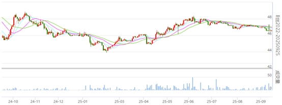 B絲20/22-250925生絲合約日線(xiàn)
