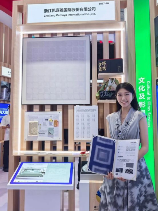 凱喜雅作為浙江展團的重要成員之一,驚艷亮相服貿會現(xiàn)場!以“AI新絲路 品牌新思路”為主題,現(xiàn)場展示了自主研發(fā)的“蝴蝶緞”數(shù)字化AI織造技術——通過織機疊加AI算法,能實現(xiàn)每平方米有5500萬個立體織點,使得面料更厚實、更耐用、更精細。