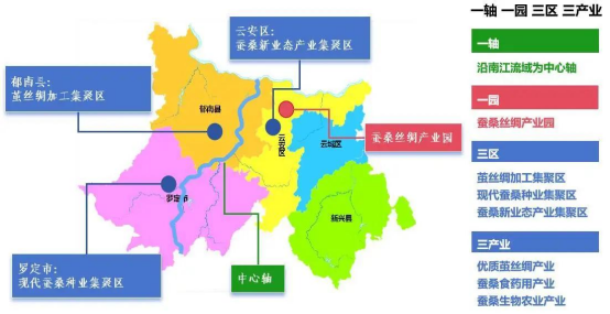 郁南縣、羅定市、云安區(qū)作為三大蠶桑繭絲綢產(chǎn)業(yè)集聚區(qū),依據(jù)各地產(chǎn)業(yè)基礎(chǔ)與發(fā)展?jié)摿?,明確差異化功能定位。