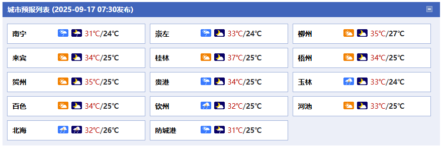 廣西氣象臺(tái)17日05時(shí)發(fā)布預(yù)報(bào):