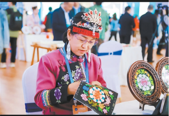 “以前只是聽(tīng)說(shuō)過(guò),今天親眼看到、親手摸到,才感受到真功夫!”在觀眾停駐的目光中,河湟刺繡以指尖技藝喚醒美的共鳴。