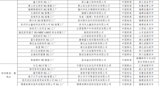 其中,悅達(dá)棉紡5G工廠、愉悅家紡基于5G+MEC+AIOT的全連接工廠、三六一度5G+智慧工廠、桐昆5G工廠等37個(gè)紡織、服裝和化纖企業(yè)項(xiàng)目上榜。