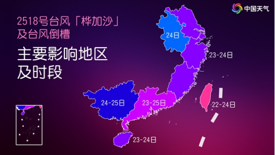 隨著超強臺風“樺加沙”靠近,今起四天(9月22日至25日),華南、華東多地將陸續(xù)迎來強風雨天氣,公眾需做好臺風防御準備。同時,今明兩天,華西至黃淮地區(qū)降雨連連,四川、陜西、河南、山東將先后有暴雨。