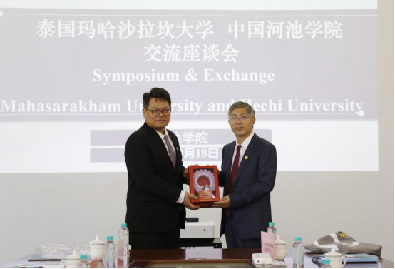 Prayook Srivilai校長(zhǎng)高度重視本次訪問(wèn),專門組織包括分管科研、健康和體育的校長(zhǎng)助理,商學(xué)院、技術(shù)學(xué)院、傳媒學(xué)院、人文學(xué)院、理學(xué)院、孔子學(xué)院院長(zhǎng),以及教育服務(wù)處、計(jì)劃處等職能部門領(lǐng)導(dǎo)組成的11人訪問(wèn)團(tuán)到訪我校。Prayook Srivilai校長(zhǎng)對(duì)我校的熱情接待表示感謝,并對(duì)周到的行程安排表示非常滿意。他介紹了瑪哈沙拉坎大學(xué)在農(nóng)業(yè)科學(xué)、生物技術(shù)、教育與人文等領(lǐng)域的學(xué)科優(yōu)勢(shì)。他表示,河池學(xué)院在蠶桑產(chǎn)業(yè)研究與技術(shù)服務(wù)方面取得了顯著成果,雙方在該領(lǐng)域具有廣闊的合作前景,希望通過(guò)此次訪問(wèn),推動(dòng)兩校在人才培養(yǎng)、科研合作及產(chǎn)業(yè)服務(wù)等方面建立長(zhǎng)期合作機(jī)制。