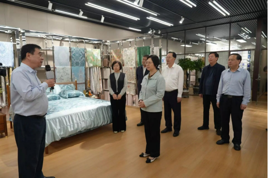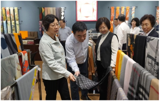 中國(guó)絲綢協(xié)會(huì)副會(huì)長(zhǎng)、集團(tuán)公司黨委書(shū)記、董事長(zhǎng)陳魯,總經(jīng)理張曉光對(duì)調(diào)研組一行的到來(lái)表示熱烈歡迎。陳魯董事長(zhǎng)帶領(lǐng)調(diào)研組一行參觀了企業(yè)產(chǎn)品展示廳,詳細(xì)介紹了企業(yè)近年來(lái)在生產(chǎn)經(jīng)營(yíng)、技術(shù)創(chuàng)新、市場(chǎng)開(kāi)拓等方面的情況,重點(diǎn)介紹了企業(yè)在文旅融合發(fā)展方面的創(chuàng)新實(shí)踐。