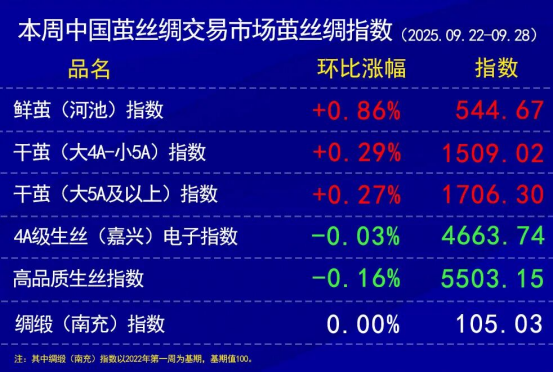 高品質(zhì)生絲價(jià)格指數(shù)本周繼續(xù)小幅下滑。