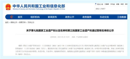 日前,工業(yè)和信息化部發(fā)布第七批國家工業(yè)遺產(chǎn)擬認(rèn)定名單和第三批國家工業(yè)遺產(chǎn)擬通過復(fù)核名單。