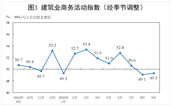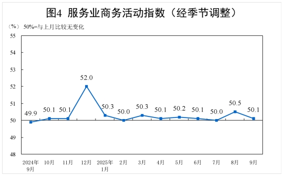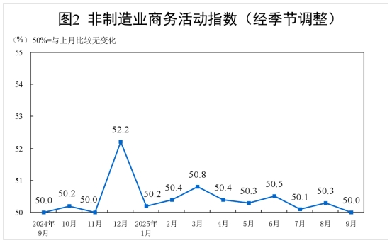 9月份,非制造業(yè)商務(wù)活動(dòng)指數(shù)為50.0%,比上月下降0.3個(gè)百分點(diǎn),位于臨界點(diǎn),非制造業(yè)業(yè)務(wù)總量總體穩(wěn)定。