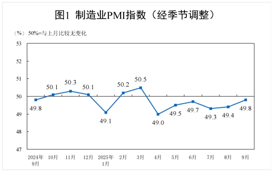 9月份,制造業(yè)采購(gòu)經(jīng)理指數(shù)(PMI)為49.8%,比上月上升0.4個(gè)百分點(diǎn),制造業(yè)景氣水平繼續(xù)改善。