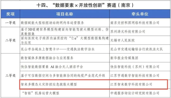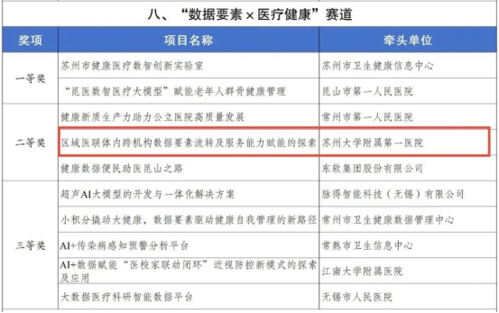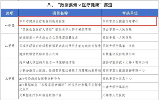 其中,“蘇州絲綢紋樣數(shù)據(jù)活化工程”“蘇州市健康醫(yī)療數(shù)智創(chuàng)新實(shí)驗(yàn)室”項(xiàng)目獲一等獎(jiǎng),“基于一體化數(shù)據(jù)底座的國(guó)資企業(yè)‘監(jiān)管+服務(wù)’智能平臺(tái)”“區(qū)域醫(yī)聯(lián)體內(nèi)跨機(jī)構(gòu)數(shù)據(jù)要素流轉(zhuǎn)及服務(wù)能力賦能的探索”項(xiàng)目獲二等獎(jiǎng),“智來(lái)多模態(tài)火災(zāi)防控應(yīng)急疏散大模型”項(xiàng)目獲三等獎(jiǎng)。