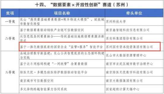 此外,獲得二等獎(jiǎng)的“基于一體化數(shù)據(jù)底座的國(guó)資企業(yè)‘監(jiān)管+服務(wù)’智能平臺(tái)”項(xiàng)目創(chuàng)新采用“政府引導(dǎo)+市場(chǎng)運(yùn)作”的服務(wù)模式,實(shí)現(xiàn)蘇州國(guó)資國(guó)企的綜合智治。