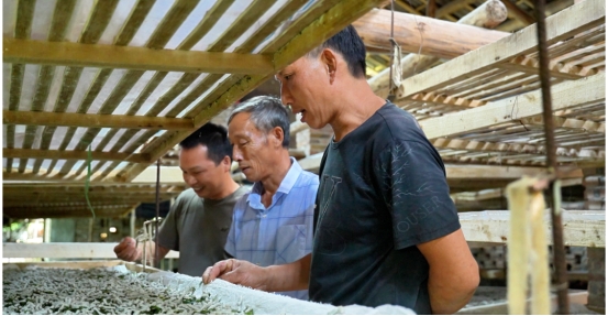 蠶桑產(chǎn)業(yè)不僅惠及本村,還吸引了周邊村莊的能人返鄉(xiāng)創(chuàng)業(yè)。來(lái)自底堡鄉(xiāng)水月村的村民雷天幡便看中蠶業(yè)發(fā)展前景,回鄉(xiāng)投身養(yǎng)殖,目前月收入已超過(guò)一萬(wàn)元。