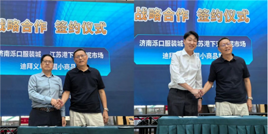 在阿聯(lián)酋開展交流期間,山東濟南濼口服裝城、江蘇無錫雙面呢市場分別與迪拜義烏中國小商品城簽署了戰(zhàn)略合作協(xié)議,標志著三方將在跨境商品流通、市場資源共享、產(chǎn)業(yè)協(xié)同發(fā)展等領(lǐng)域開啟深度合作新篇章。