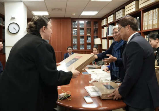 大系總主編趙豐教授向大都會藝術(shù)博物館出版編輯部贈書