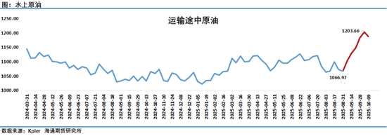 EIA已經(jīng)率先公布了10月份能源市場展望,總結(jié)就是供應(yīng)過剩壓力進(jìn)一步增加,但是油價(jià)下跌空間略有上移(在中美經(jīng)貿(mào)摩擦升溫后這一預(yù)期可能要再次下調(diào)),接下來的一周歐佩克、國際能源是等將陸續(xù)公布其9月份月報(bào),此前根據(jù)彭博調(diào)查數(shù)據(jù)顯示,9月0PEC產(chǎn)量環(huán)比增加40萬桶/日,主要由沙特增32萬桶/日貢獻(xiàn),0PEC+增產(chǎn)8國中的伊拉克、科威特、阿聯(lián)酋并未貢獻(xiàn)增量,不過隨著伊拉克庫區(qū)石油出口于9月末重啟,其10月產(chǎn)量有望重回增加。此外,委內(nèi)瑞拉、伊朗、利比亞在9月分別貢獻(xiàn)了8萬桶/日、4萬桶/日、4萬桶/日的環(huán)比增量,委內(nèi)瑞拉產(chǎn)量達(dá)到了100萬桶/日。根據(jù)彭博數(shù)據(jù)自4月以來沙特自己用了半年保質(zhì)保量的完成了100萬桶/日產(chǎn)量的回歸,而歐佩克減產(chǎn)國半年合計(jì)增產(chǎn)155萬桶/日。實(shí)際給原油市場帶來供應(yīng)增量明顯,根據(jù)Klper統(tǒng)計(jì)OPEC+海運(yùn)出口9月增加逾110萬桶/日,其中沙特+74.3萬桶/日,伊朗+33.2萬桶/日。9月中旬美國原油出口升至近500萬桶/日,為2024年3月以來最高。美國原油凈進(jìn)口量已經(jīng)低至100-200萬桶/日,這也能解釋為什么美國原油庫存近期沒有大幅累庫壓力,另外值得注意的是根據(jù)Klper跟蹤時(shí)隔7個(gè)月后,美灣原油重新流向中國,10月裝船VLCC預(yù)計(jì)達(dá)33.5萬桶/日。數(shù)據(jù)顯示9月以來水上運(yùn)輸途中的原油大幅增長超1.3億桶,龐大的增量遠(yuǎn)超上半年的高位,這意味著后續(xù)到港后會給原油市場帶來大量的顯性庫存。