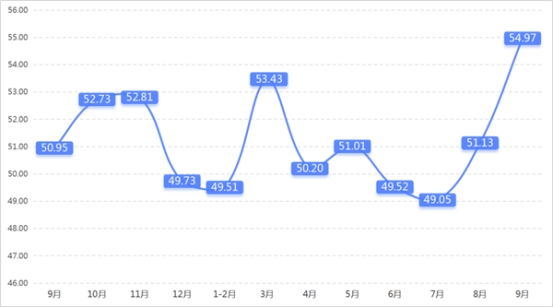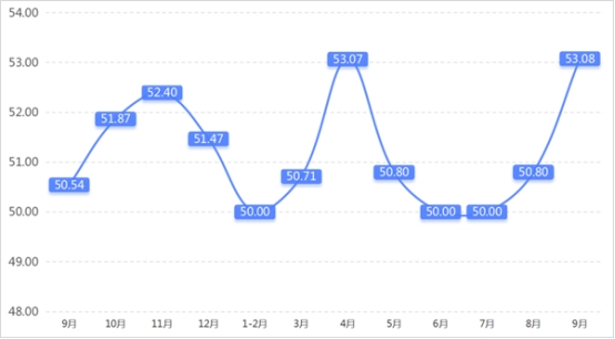 從管理者景氣指數(shù)來看,總指數(shù)中,9月管理者景氣指數(shù)為52.42,較上期上升0.16個百分點;經(jīng)營環(huán)境指數(shù)為54.84,較上期上升0.65個百分點。
