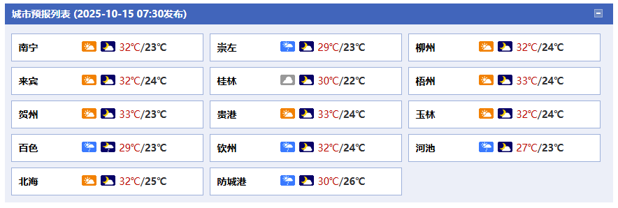 廣西氣象臺(tái)15日05時(shí)發(fā)布預(yù)報(bào):