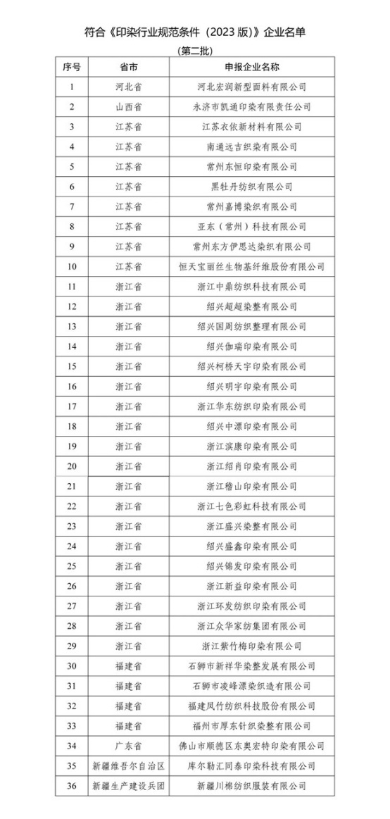 工信部發(fā)布符合《印染行業(yè)規(guī)范條件(2023版)》企業(yè)名單(第二批)