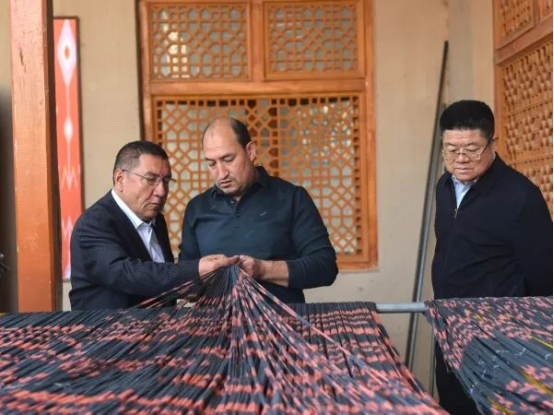 下午,交流團一行來到和田市吉亞鄉(xiāng)破繭工作室,參觀工作室在絲綢文創(chuàng)產(chǎn)品開發(fā)上的成果。隨后,在吉亞鄉(xiāng)人民政府召開的座談會上,兩地工會及企業(yè)代表圍繞“絲綢企業(yè)文化建設”“工匠崗位技藝創(chuàng)新”展開深入交流。浙江省總工會宣教部部長林強表示,“浙江‘精工細作’的產(chǎn)業(yè)基因與新疆‘特色鮮明’的資源優(yōu)勢高度契合、互補性極強。以絲綢為核心紐帶,既要推動浙江絲綢的設計、工藝、品牌優(yōu)勢向新疆延伸;也要借力新疆的優(yōu)質(zhì)原料、文化元素與向西開放區(qū)位,反哺浙江絲綢產(chǎn)業(yè)創(chuàng)新升級,最終實現(xiàn)兩地從‘資源對接’到‘產(chǎn)業(yè)共榮’的深度融合?!?o:p>