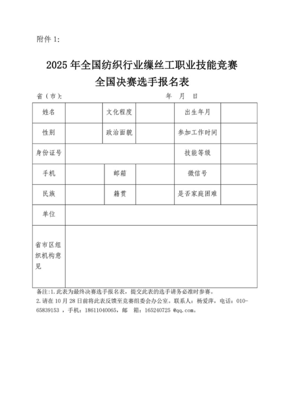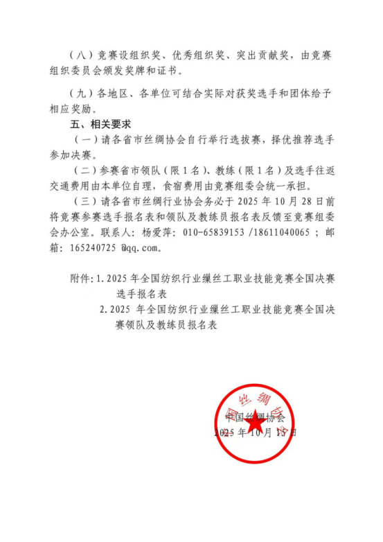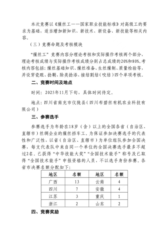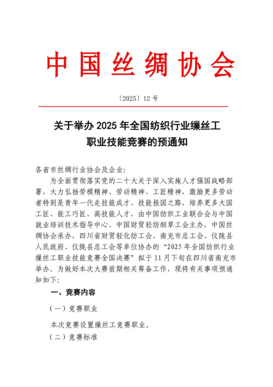 關(guān)于舉辦2025年全國(guó)紡織行業(yè)繅絲工職業(yè)技能競(jìng)賽的預(yù)通知