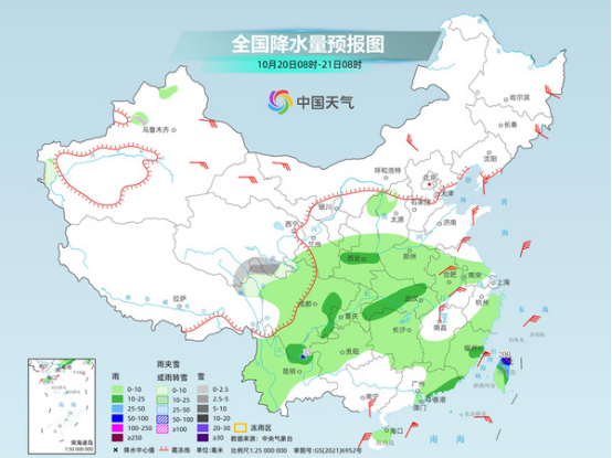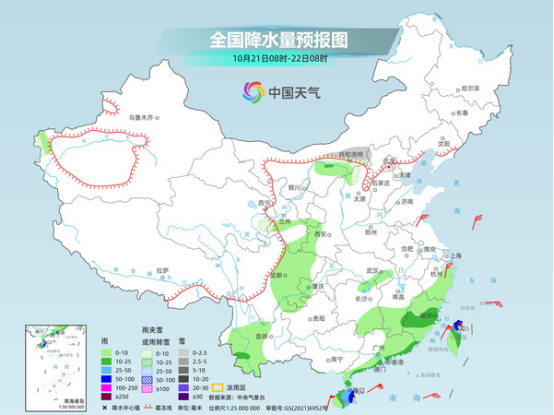 今明天,華西秋雨區(qū)降雨仍頻繁,不少地方隨著氣溫下降,雨雪相態(tài)將發(fā)生轉(zhuǎn)換,公眾外出需小心慢行,注意交通安全。臺(tái)風(fēng)“風(fēng)神”進(jìn)入南海后將遭遇冷空氣,導(dǎo)致其路徑轉(zhuǎn)向偏南,登陸我國(guó)的可能性大大降低,且臺(tái)風(fēng)強(qiáng)度也會(huì)受到冷空氣破壞,但冷空氣和臺(tái)風(fēng)“風(fēng)神”結(jié)合會(huì)給我國(guó)東部及南部海域帶來(lái)長(zhǎng)時(shí)間的大風(fēng)天氣,將持續(xù)到24日,相關(guān)海域作業(yè)平臺(tái)以及往來(lái)船舶要做好防御大風(fēng)的準(zhǔn)備。