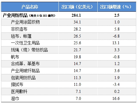 數(shù)據(jù)來(lái)源:中國(guó)海關(guān),中國(guó)產(chǎn)業(yè)用紡織品行業(yè)協(xié)會(huì)
