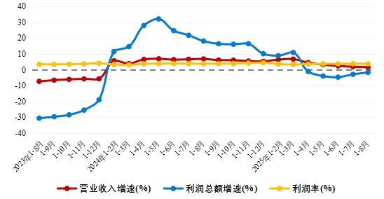 經(jīng)濟(jì)效益方面,根據(jù)國(guó)家統(tǒng)計(jì)局?jǐn)?shù)據(jù),1-8月產(chǎn)業(yè)用紡織品行業(yè)規(guī)模以上企業(yè)的營(yíng)業(yè)收入同比增長(zhǎng)1.6%,利潤(rùn)總額同比下降1.7%,利潤(rùn)降幅連續(xù)兩個(gè)月收窄;營(yíng)業(yè)利潤(rùn)率為3.7%,同比下降0.1個(gè)百分點(diǎn)。