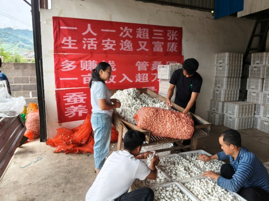 鄉(xiāng)政府不定期舉辦蠶桑產(chǎn)業(yè)發(fā)展培訓(xùn)現(xiàn)場(chǎng)會(huì),邀請(qǐng)農(nóng)技專家開展種養(yǎng)技術(shù)實(shí)操教學(xué),創(chuàng)新開展以蠶桑產(chǎn)業(yè)發(fā)展為主題的情景黨課,并對(duì)年度高收入示范戶進(jìn)行獎(jiǎng)勵(lì)。以“技術(shù)賦能+榜樣獎(jiǎng)勵(lì)”雙輪驅(qū)動(dòng),帶動(dòng)農(nóng)戶擴(kuò)大規(guī)模、引進(jìn)新技術(shù)。在示范戶的榜樣作用和可觀經(jīng)濟(jì)收益的雙重驅(qū)動(dòng)下,全鄉(xiāng)超100戶農(nóng)戶投身蠶桑產(chǎn)業(yè),覆蓋范圍從重點(diǎn)村向周邊延伸,該產(chǎn)業(yè)已成為群眾增收的重要支柱之一。