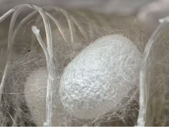 在南通專家?guī)淼臉藴驶B(yǎng)殖技術下,這里的蠶寶寶住進了“單身公寓”,吐出的絲又長又勻,結出的繭又厚又白,硬度非常高,是市場上最受歡迎的上等繭。豐收的優(yōu)質蠶繭馬上就能在當?shù)剡M行深加工,變成高檔的絲制品,價值倍增。桑葉孕生機,蠶繭凝精華,絲綢增價值——這條串聯(lián)起“田間到車間”的富民產業(yè)鏈,讓伊寧縣的產業(yè)根基越扎越牢。